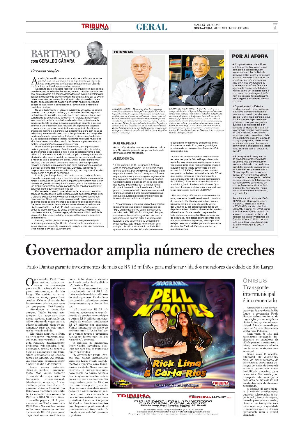 Além desta apresentação, tivemos no programa aquela informação especial do jornal Tribuna Independente de Alagoas, Aquele abraço e muito mais!